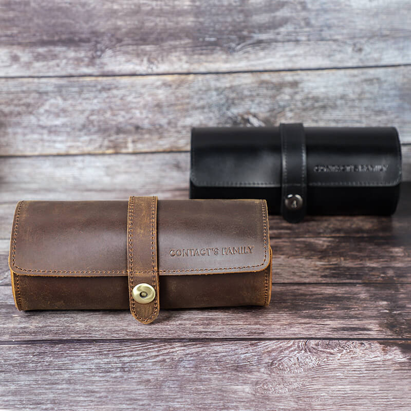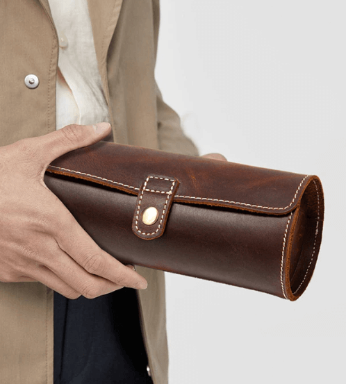 Das Etui ist aus echtem Leder gefertigt und wird Ihre Uhren stilvoll schützen. Das Etui ist innen mit Samt ausgeschlagen, der weich genug ist, um die wertvollen Zeitmesser darin zu polstern. Dieses Uhrenetui schützt Ihre Uhren und sieht dabei in jeder Situation stilvoll aus.