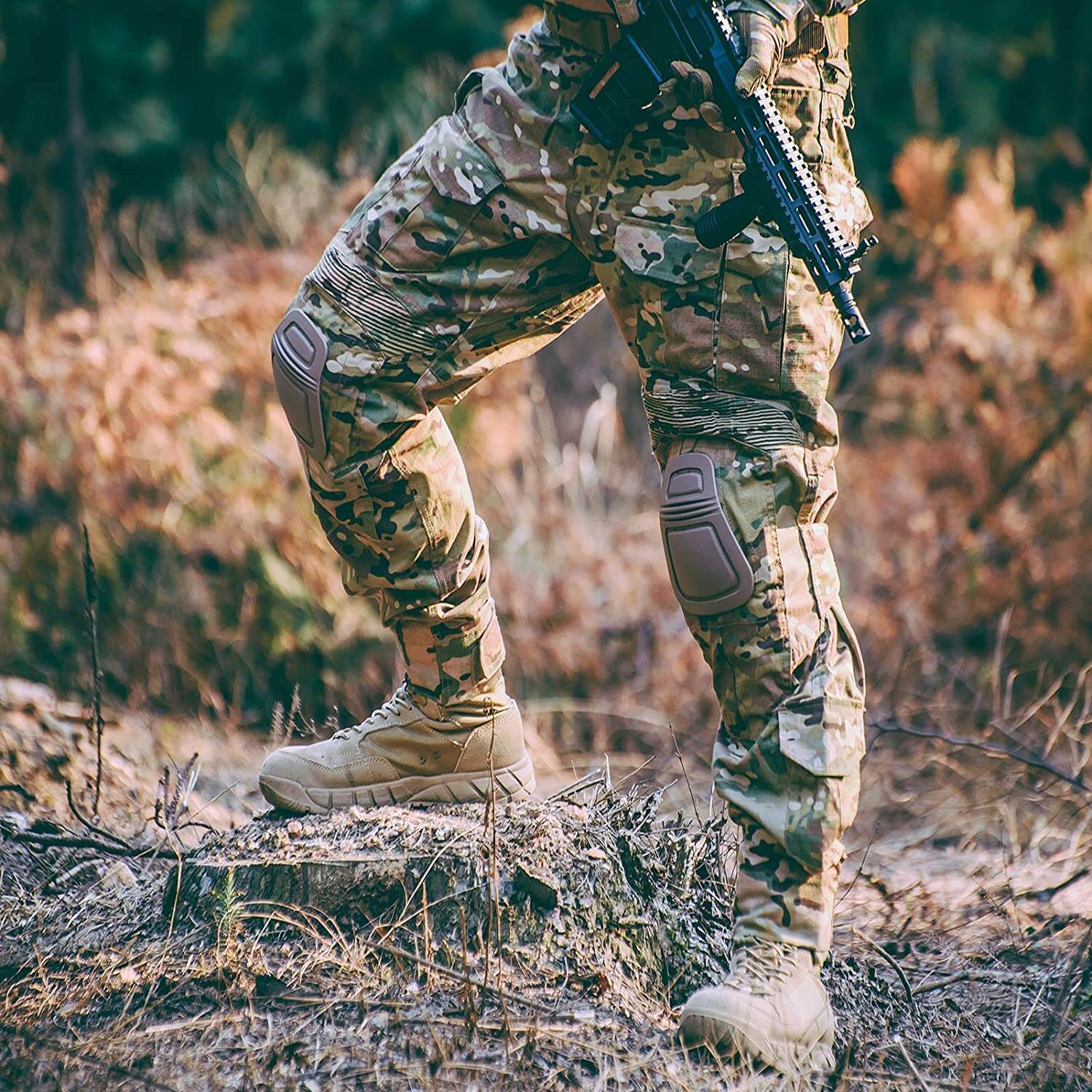 Professionelle Kampfhosen: Das Knie ist aus elastischem Camouflage-Stoff, und die Kniescheibe ist abnehmbar, was nicht nur nicht das Aussehen beeinträchtigt, sondern auch maximalen Komfort bietet, der den Bedürfnissen aller Bewegungen entspricht und die Knie schützt.