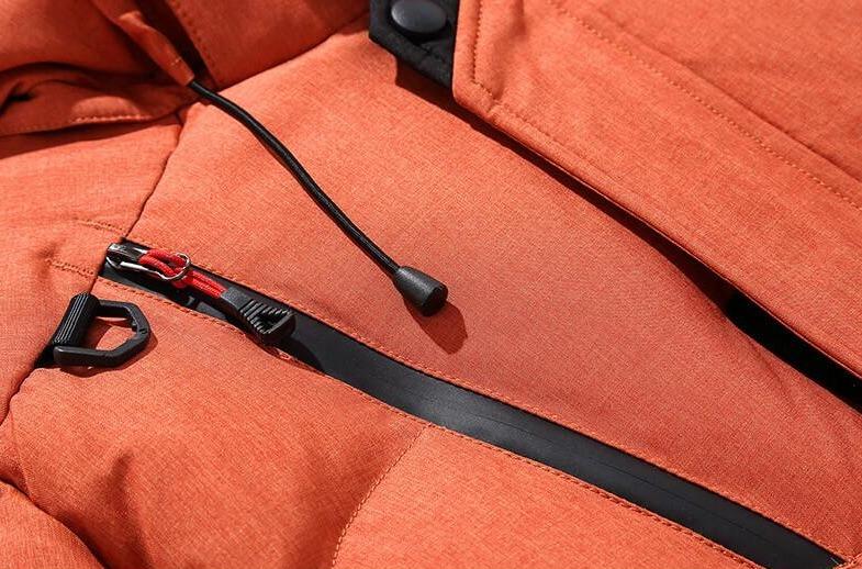 Funktionalität - Ein mittiger Frontreißverschluss und zwei Seitentaschen bieten praktischen Stauraum; der mit Fleece gefütterte Kragen ist mit verstellbaren Kordelzügen ausgestattet, die für Isolierung und Wärme sorgen.