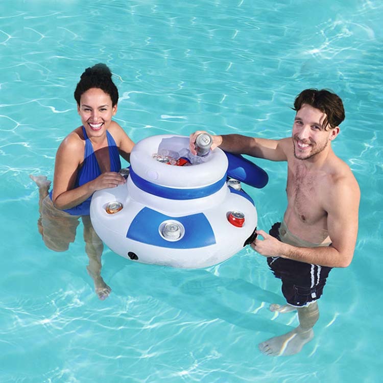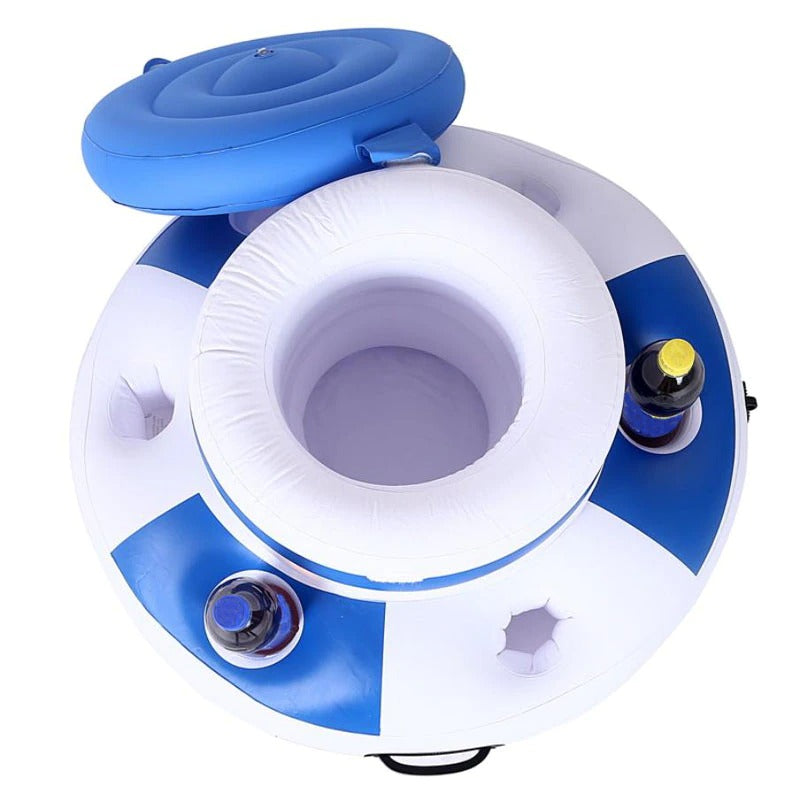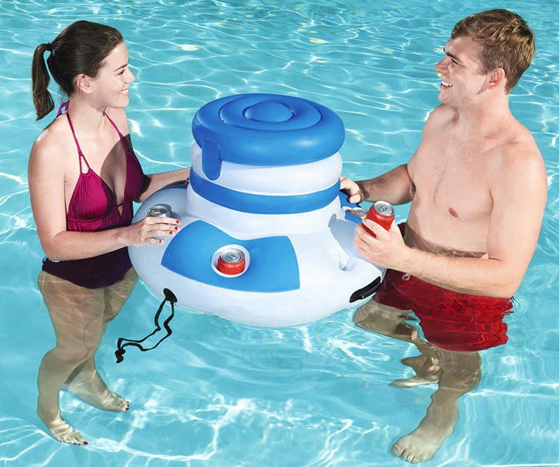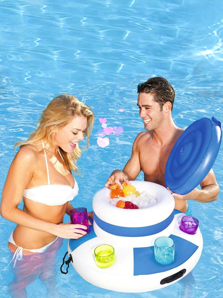 Genießen Sie ein erfrischendes Getränk direkt in Ihrem Pool mit dem aufblasbaren Getränkehalter. Der aufblasbare Getränkehalter mit sechs Becherhaltern und einem Eimerkühler für eiskalte Getränke ist ein unverzichtbares Zubehör für jede Poolparty im Garten.